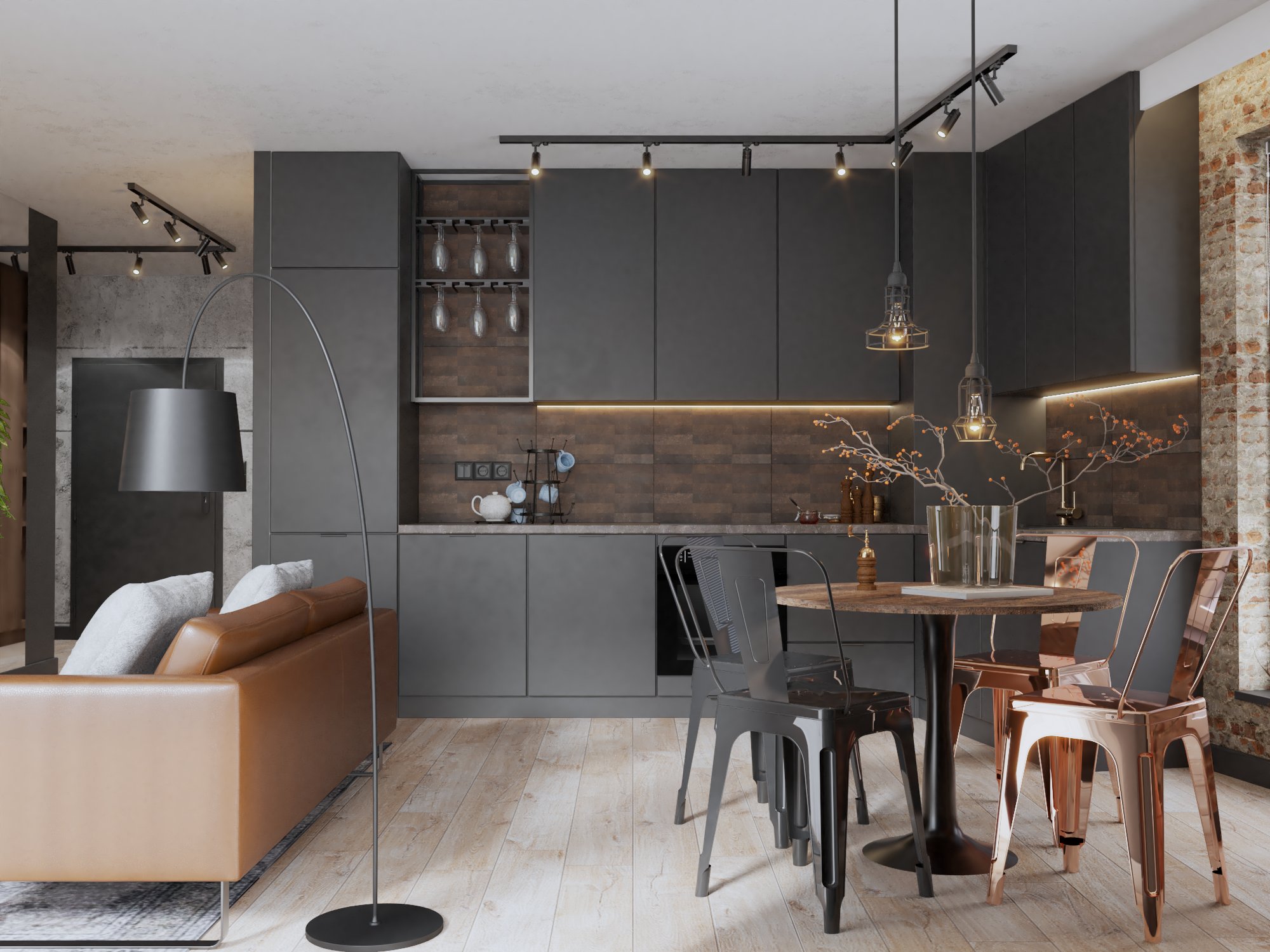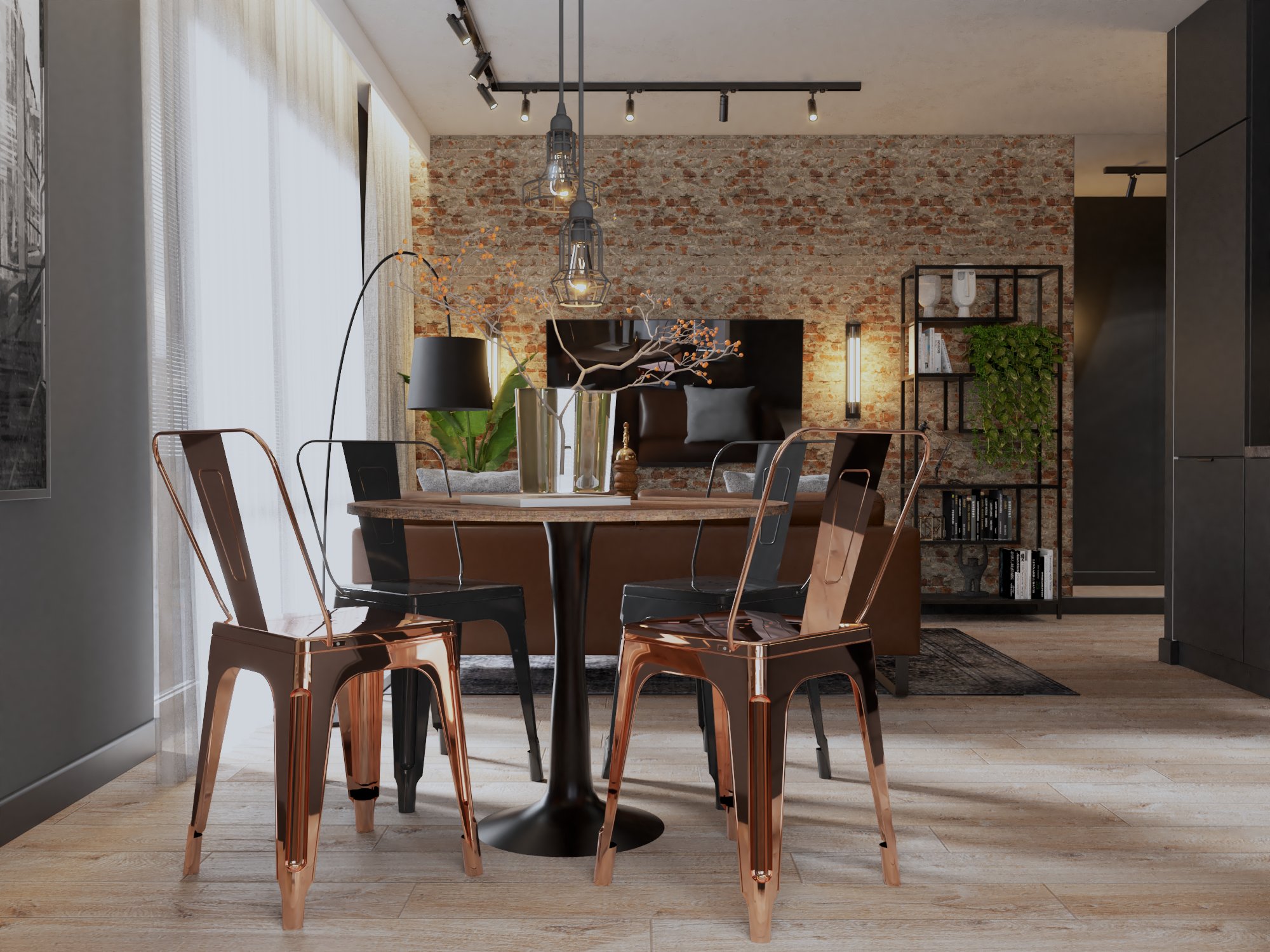 Zobacz projekt loftowego mieszkania, w którym surowa cegła i metal łączą się z ciepłym drewnem i designerskim oświetleniem. Industrialny klimat, funkcjonalność i eleganckie detale tworzą wyjątkową przestrzeń do życia.