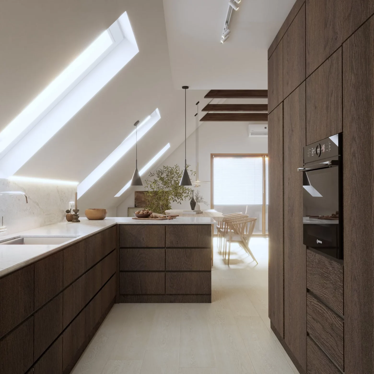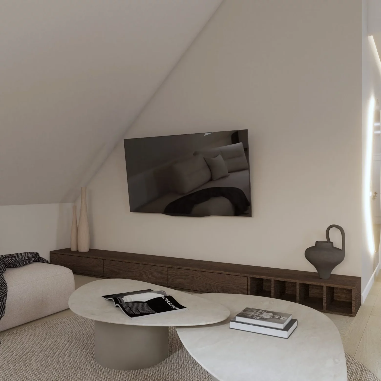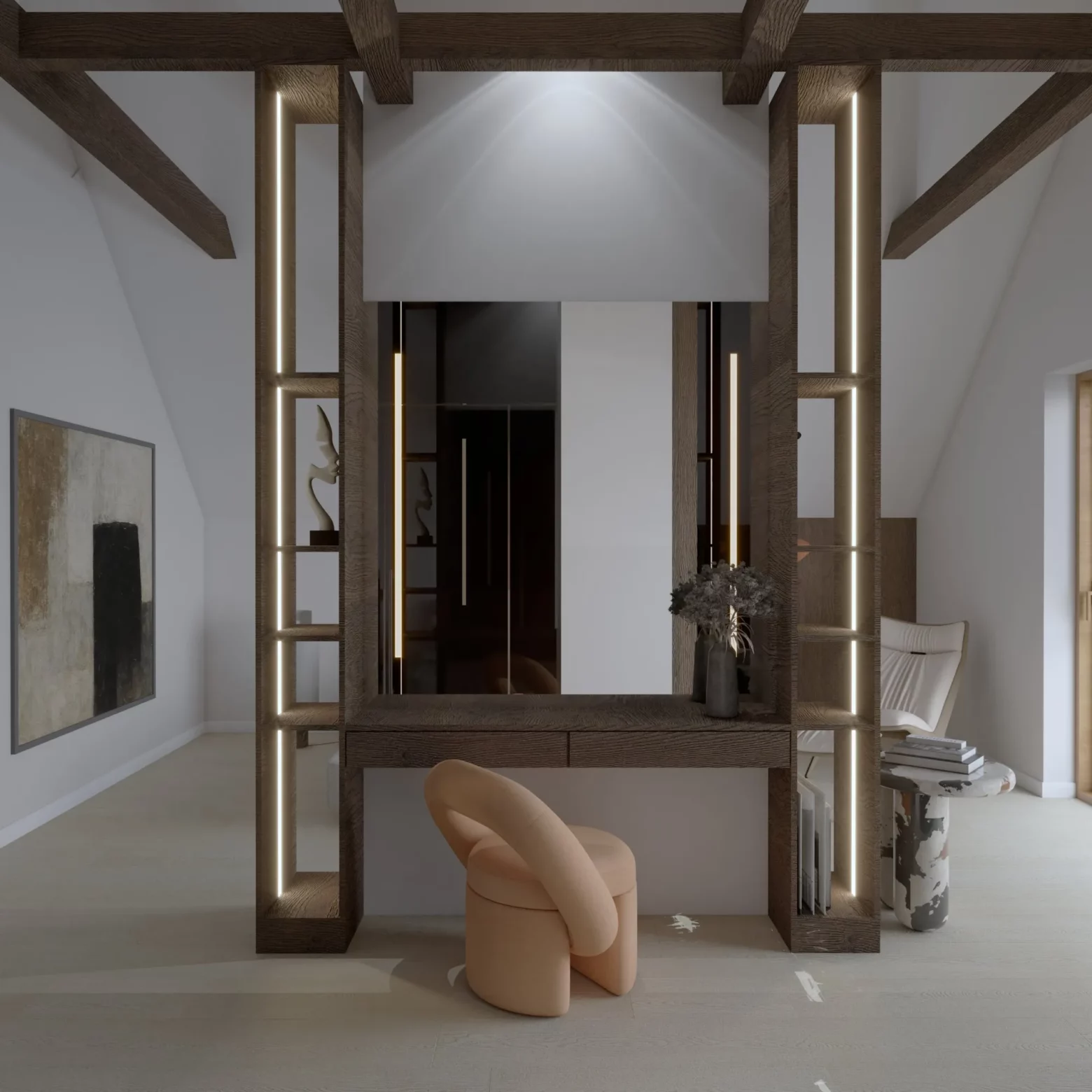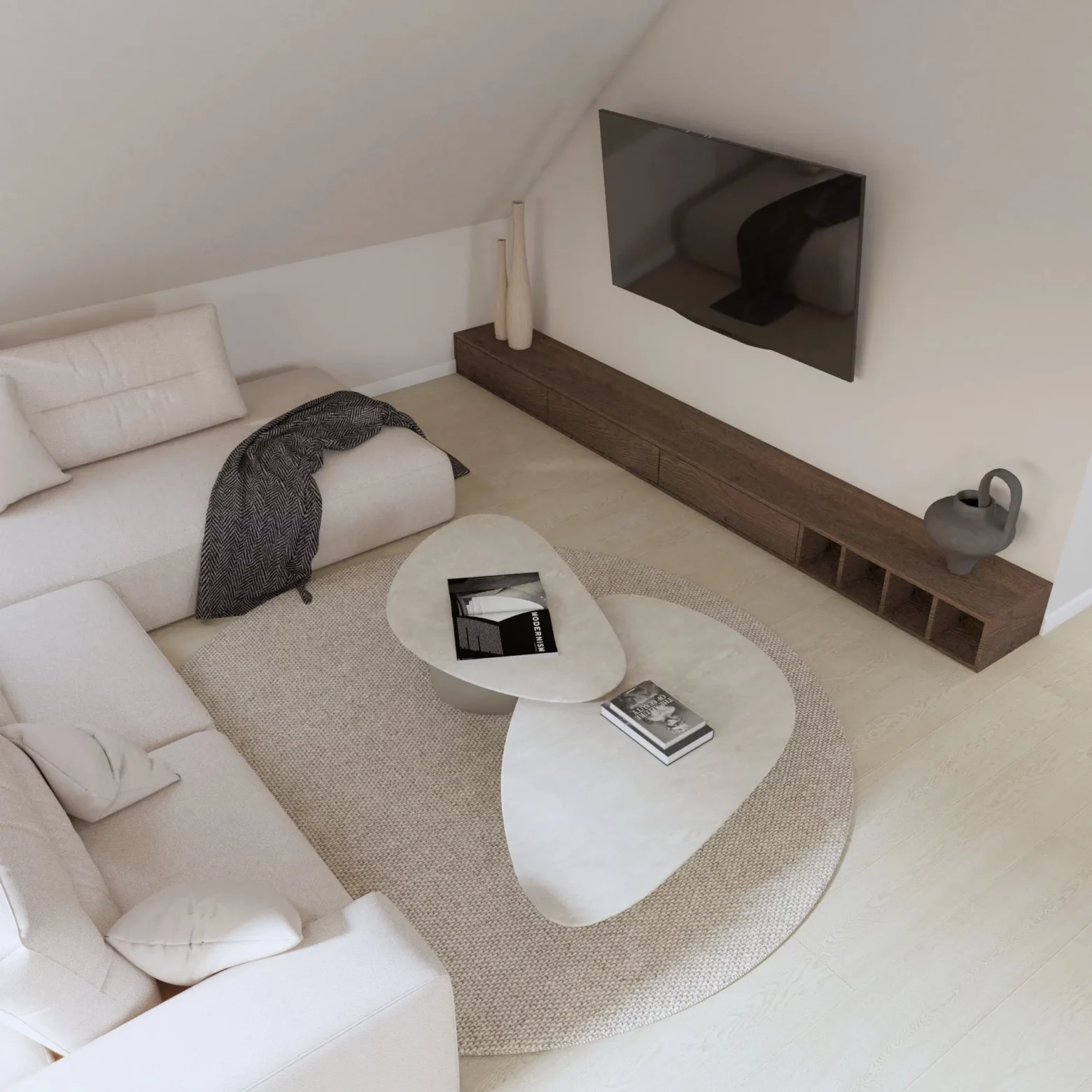 Ten projekt nowoczesnego mieszkania to połączenie jasnych przestrzeni, naturalnych materiałów i skandynawskiej prostoty. Drewniane belki, ciepłe barwy i funkcjonalne meble tworzą przytulne wnętrze, które inspiruje spokojem i harmonią. Idealne dla osób ceniących naturalne piękno i minimalizm w codziennym życiu.