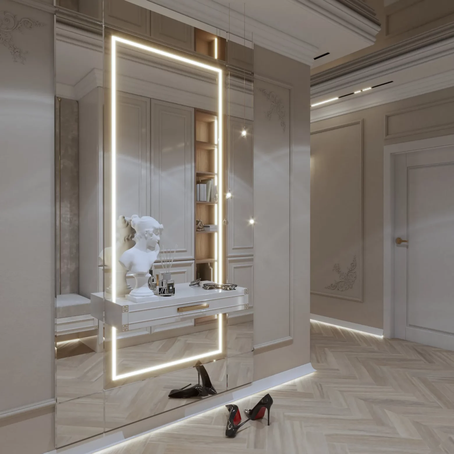 Nowoczesne wnętrze z lustrzaną perspektywą