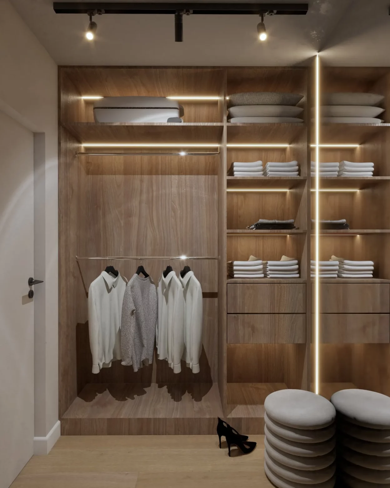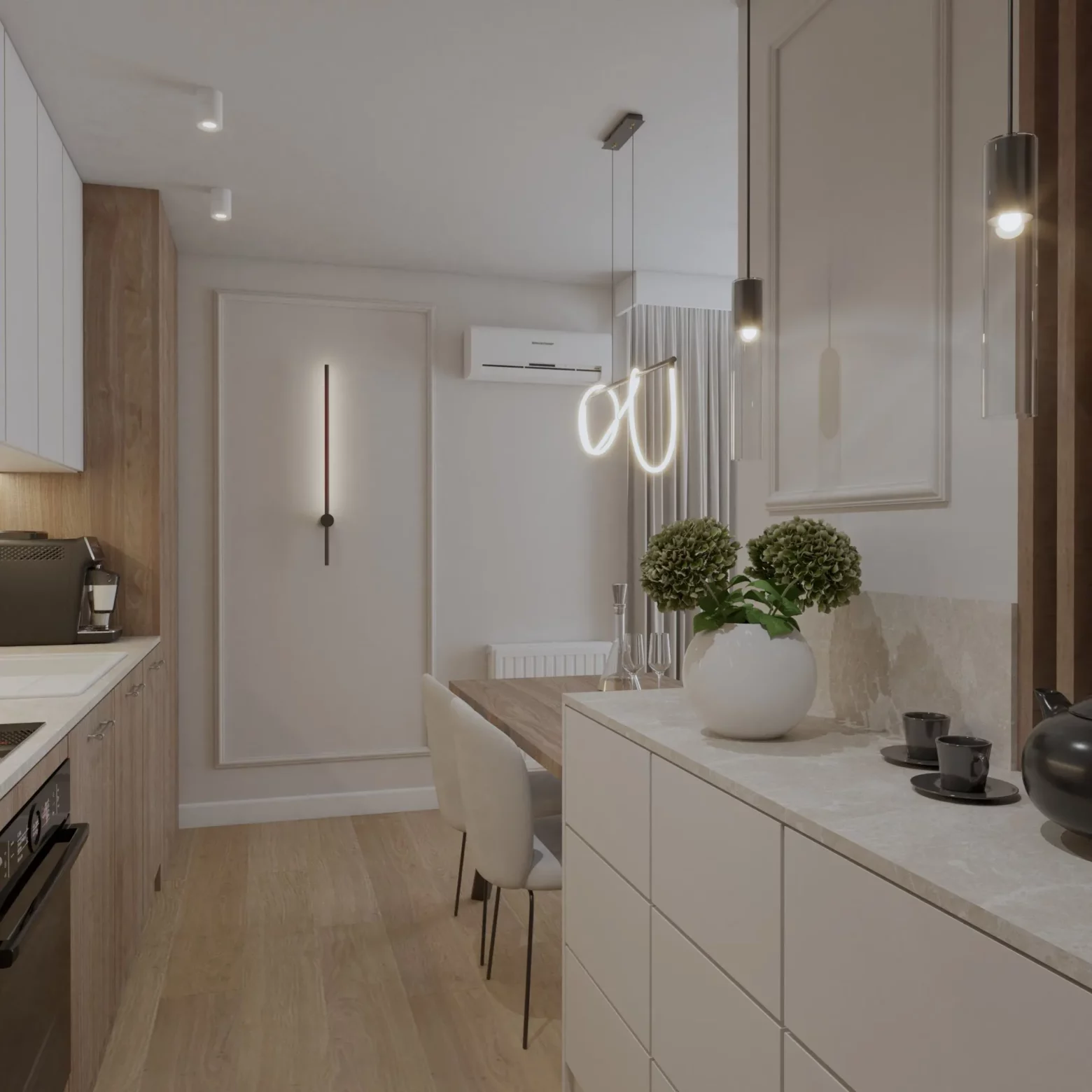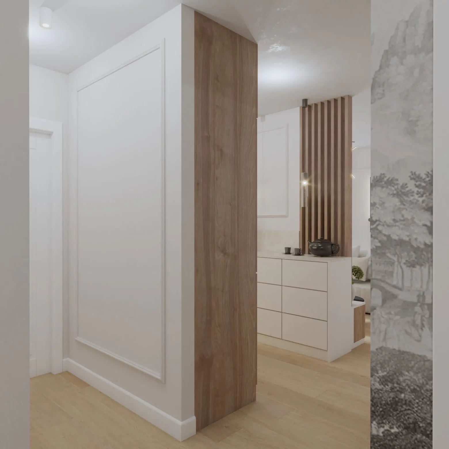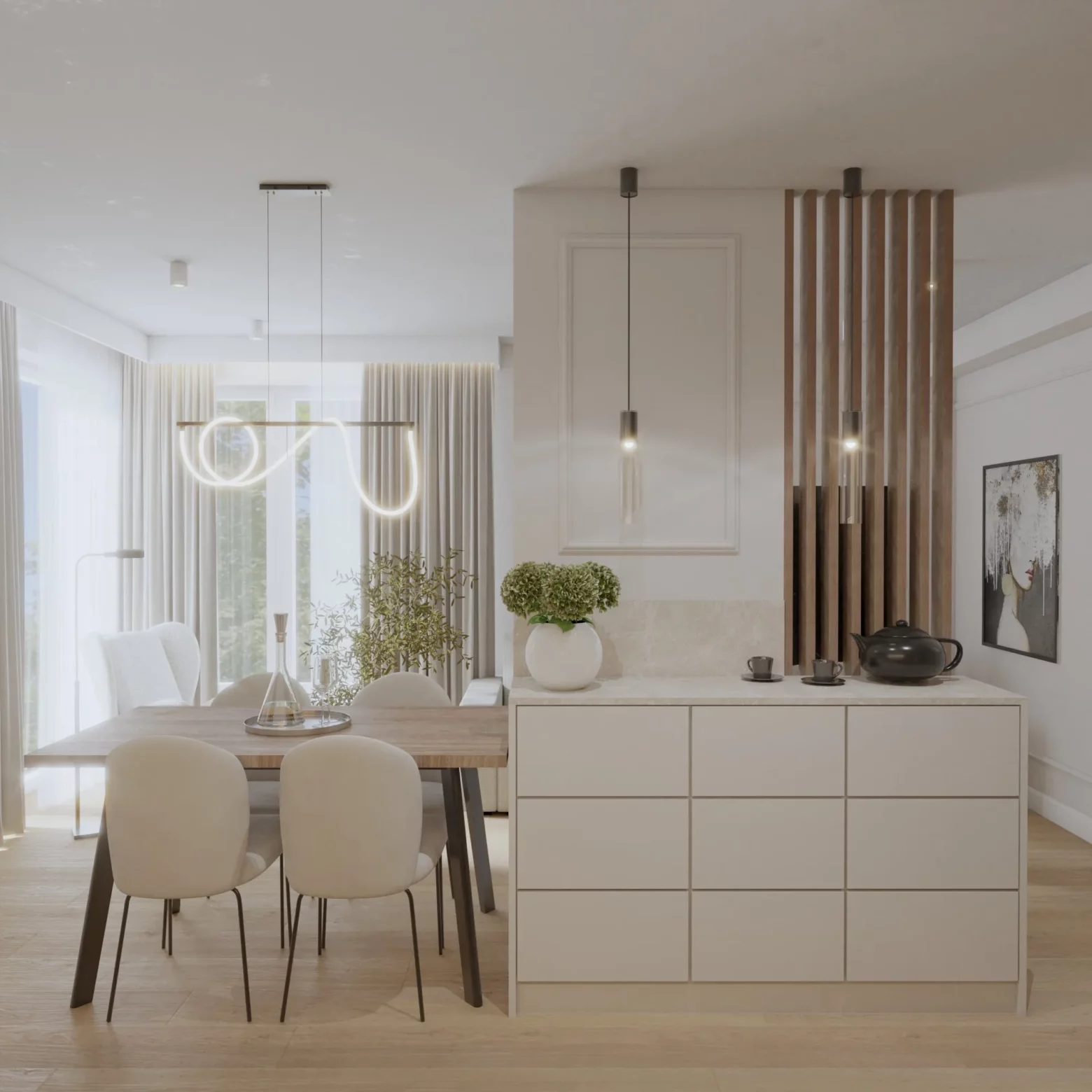 Projekt mieszkania z naturalnymi i ciepłymi detalami