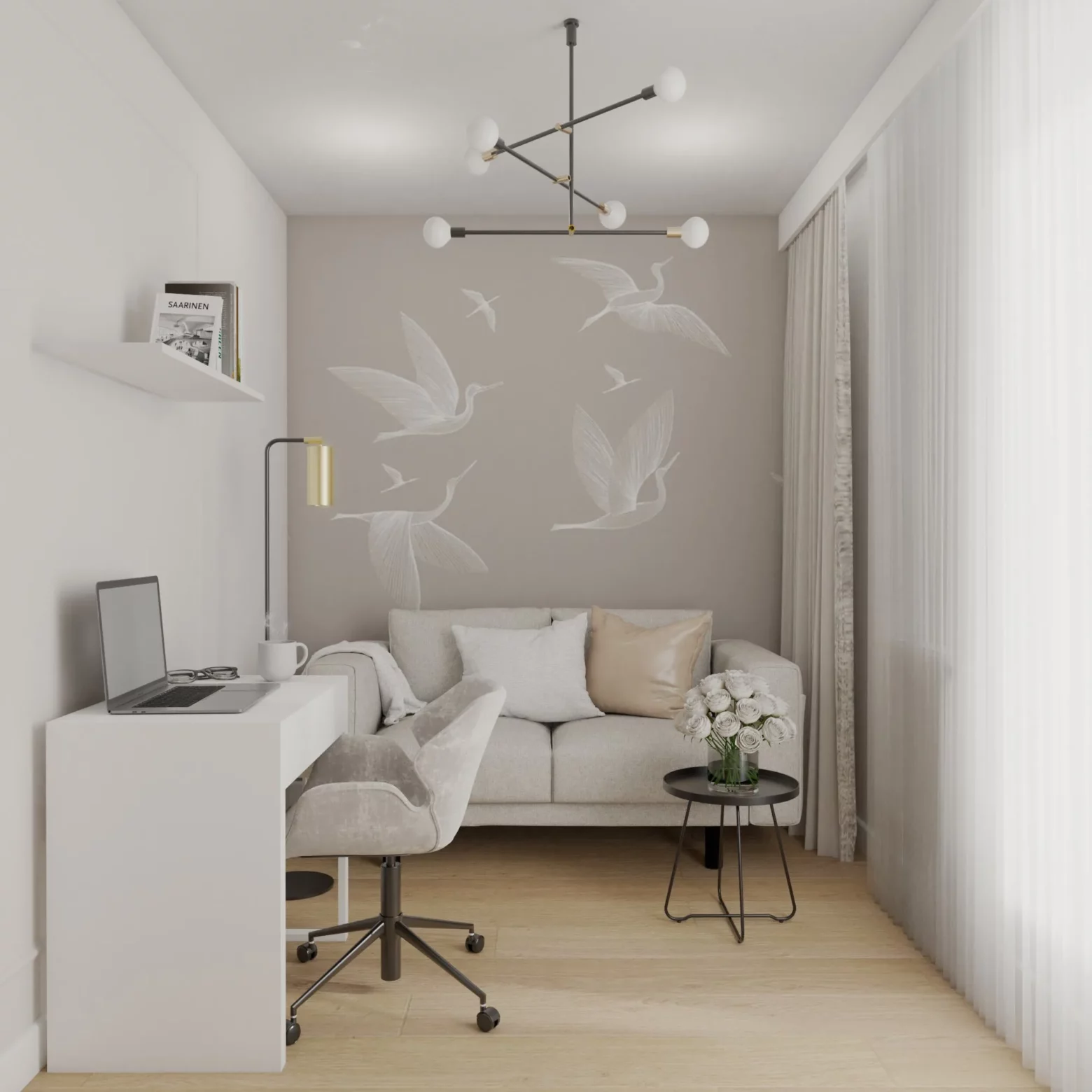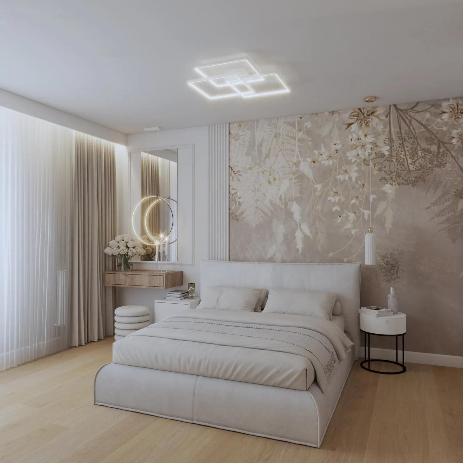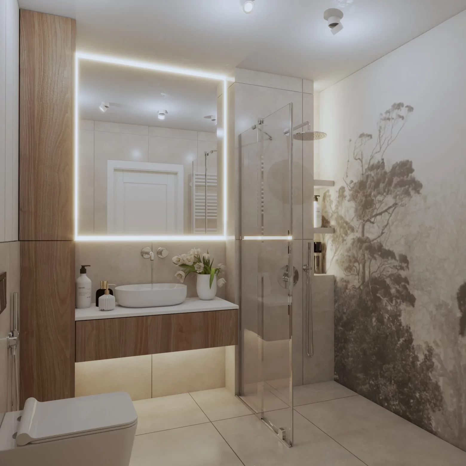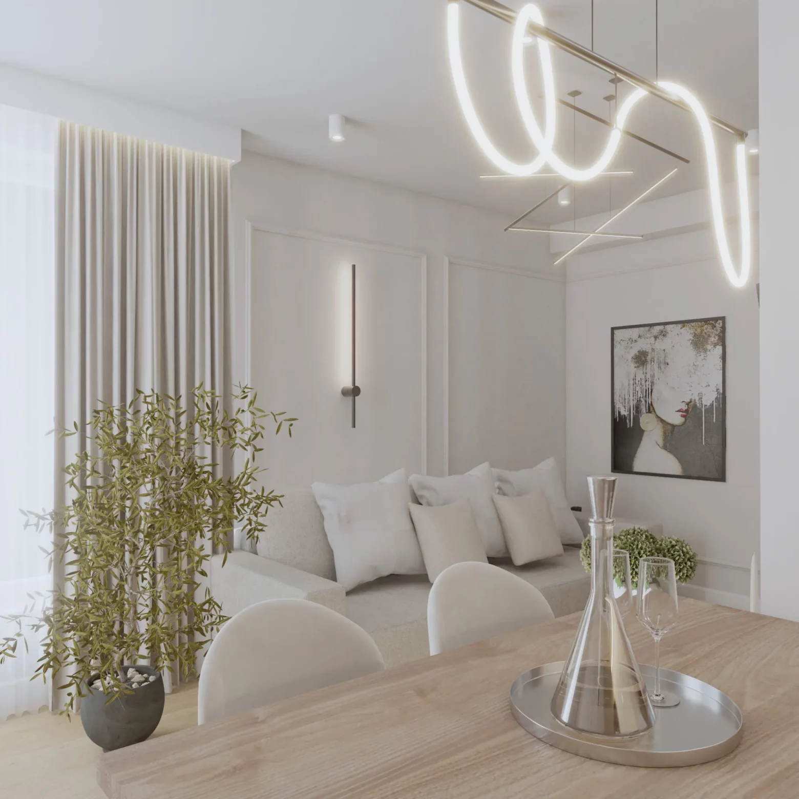 Ten nowoczesny projekt mieszkania w Gorlicach łączy jasne, przestronne wnętrza z naturalnymi materiałami i subtelnymi motywami florystycznymi. Drewno, stonowane kolory i delikatne dekoracje nadają wnętrzu świeży, przytulny charakter. Idealne rozwiązanie dla osób szukających harmonii między nowoczesnością a naturą.