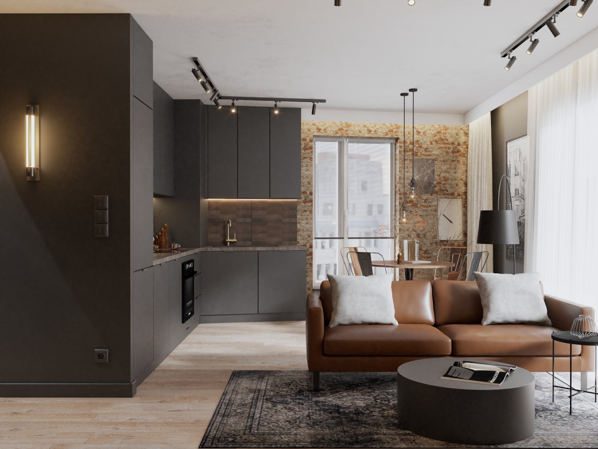 Projekt mieszkania loftowego – industrialny styl z eleganckim wykończeniem