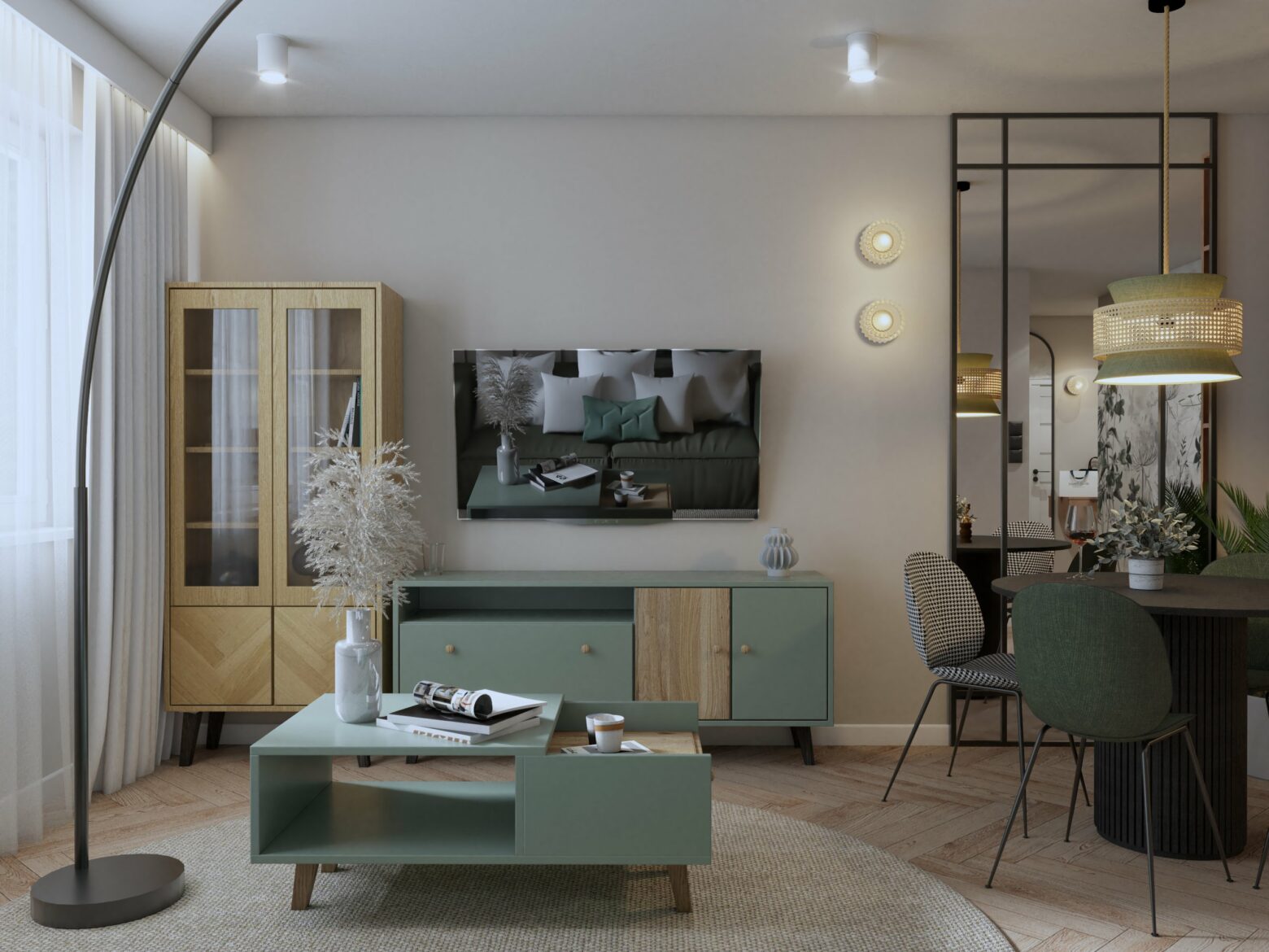 Projekt mieszkania z naturalnymi i ciepłymi detalami