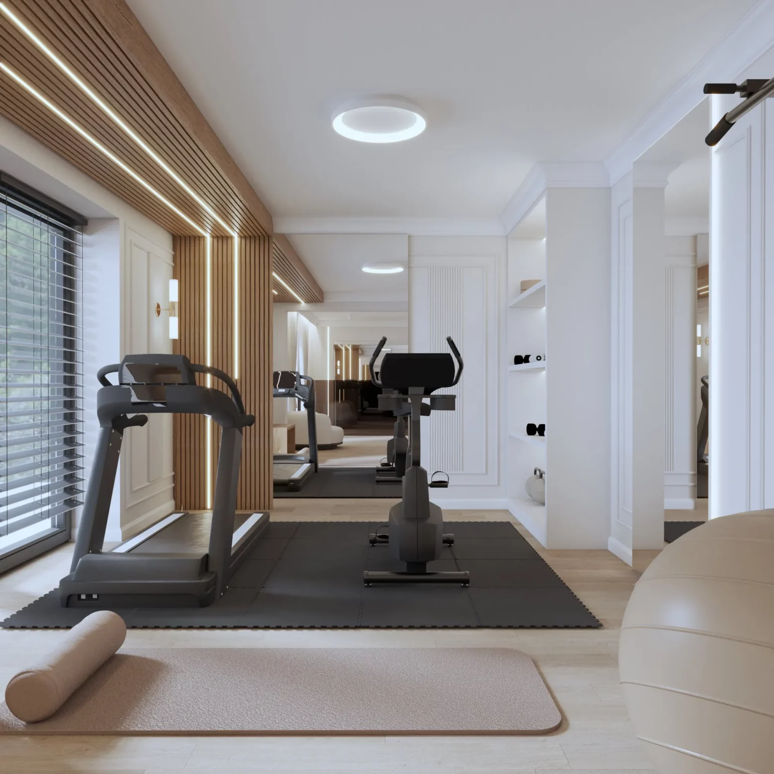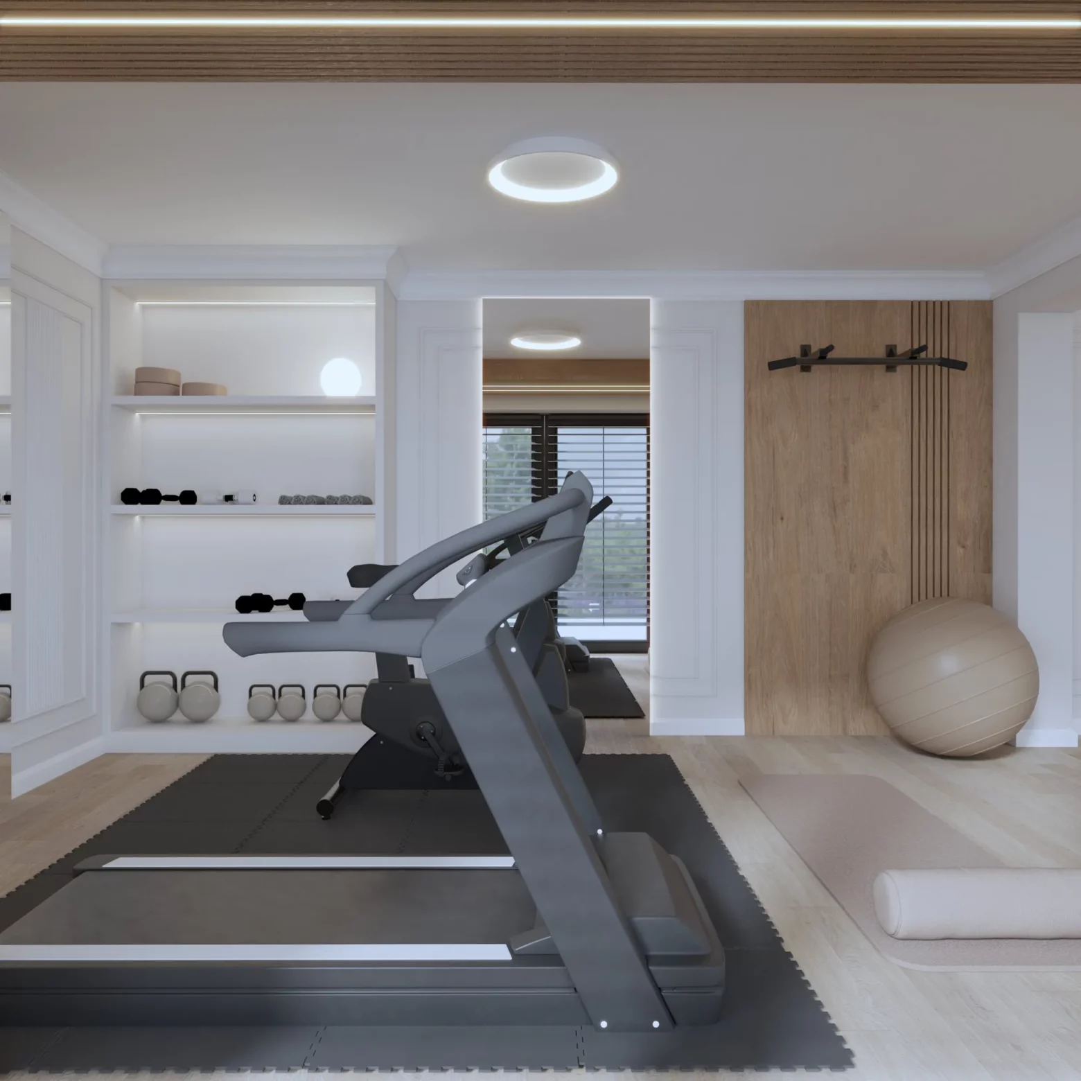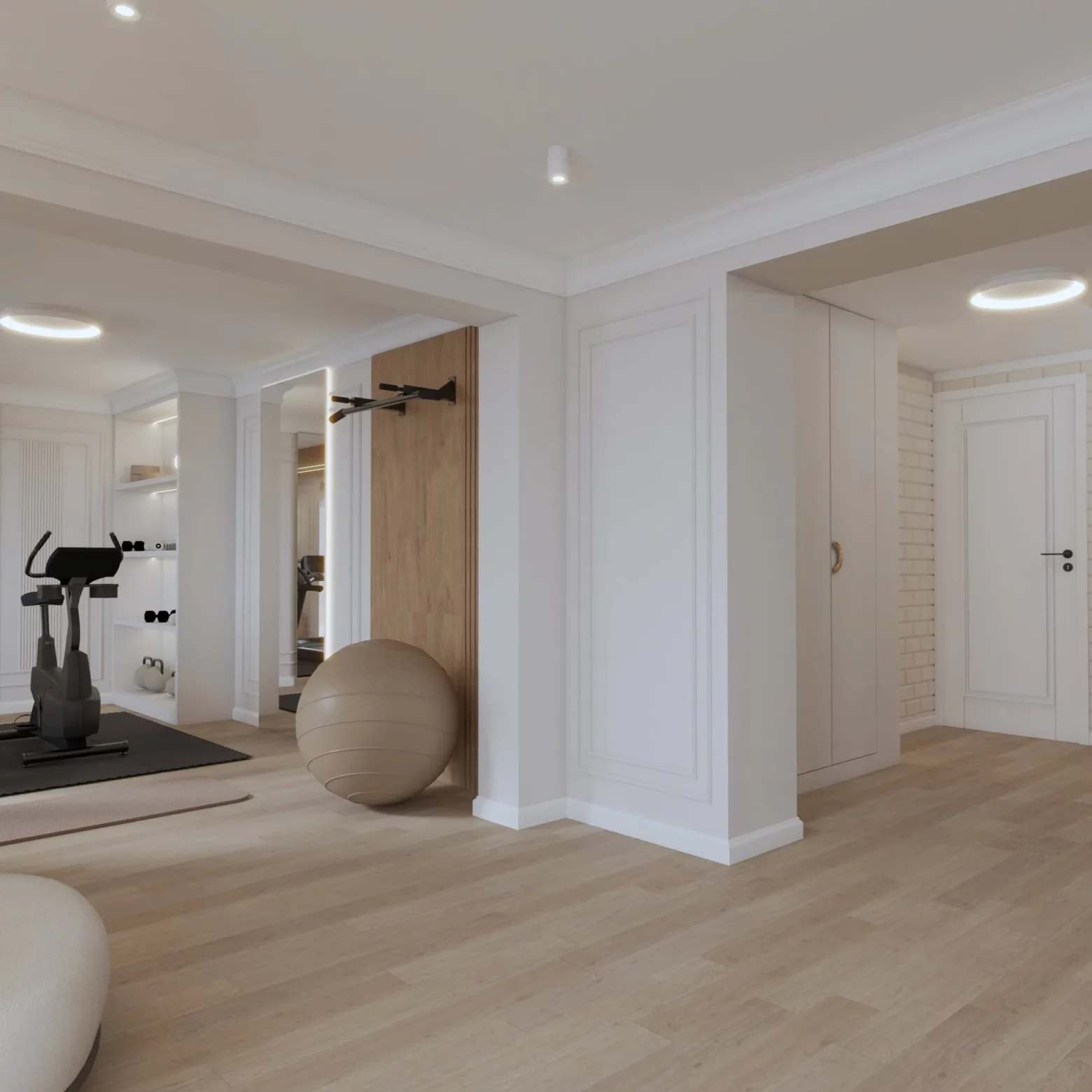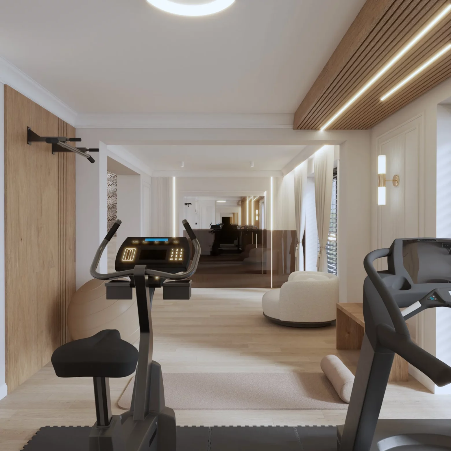 Projekt nowoczesnej strefy relaksu i fitness w domu w Gorlicach, która została zaprojektowana z myślą o komforcie i zdrowiu jej mieszkańców. Przestronna siłownia z nowoczesnym sprzętem, sąsiadująca z sauną oraz strefą SPA, tworzy idealne miejsce do regeneracji ciała i umysłu. Naturalne materiały, przyjemne oświetlenie i subtelne detale sprawiają, że ta domowa oaza sprzyja relaksowi i aktywności fizycznej przez cały rok.