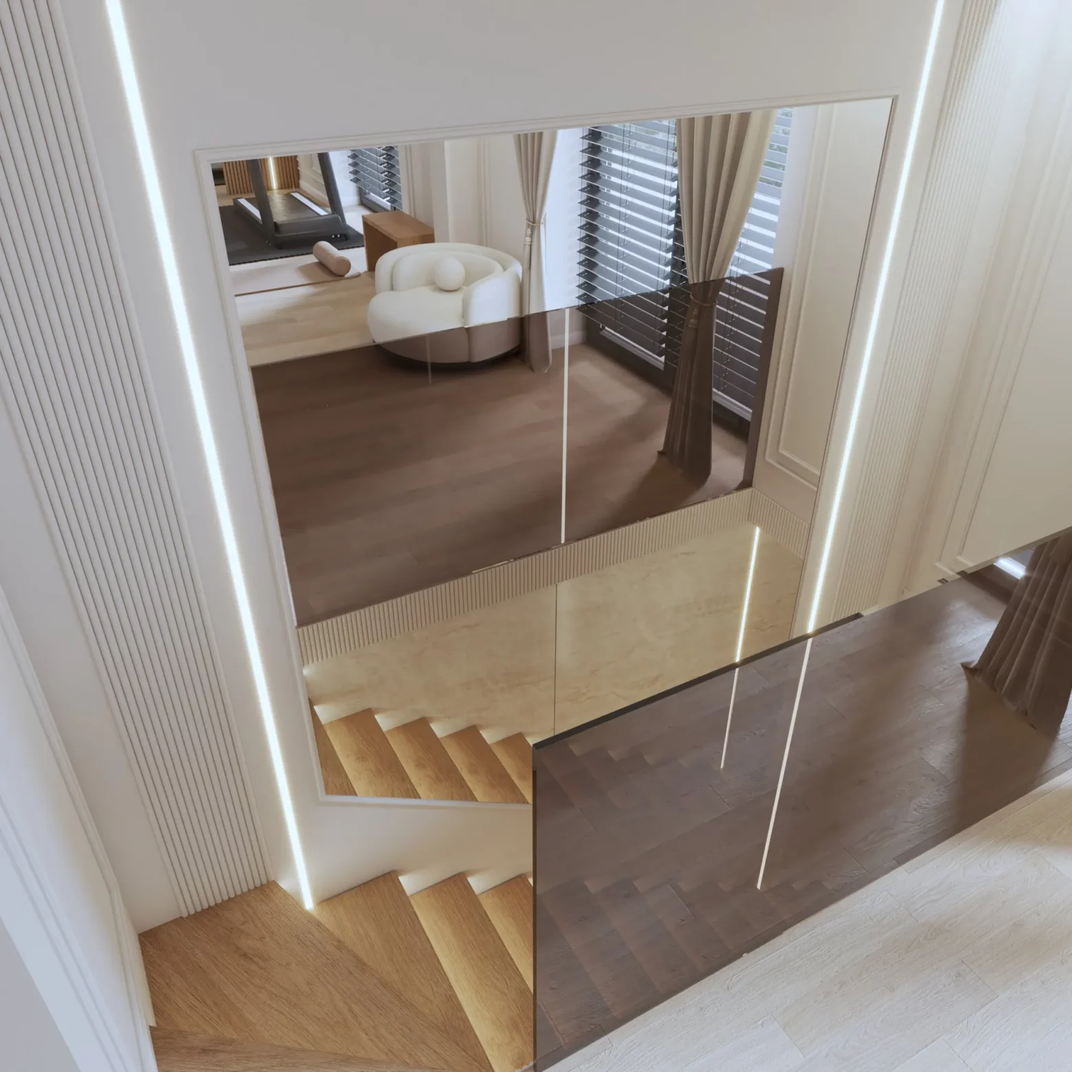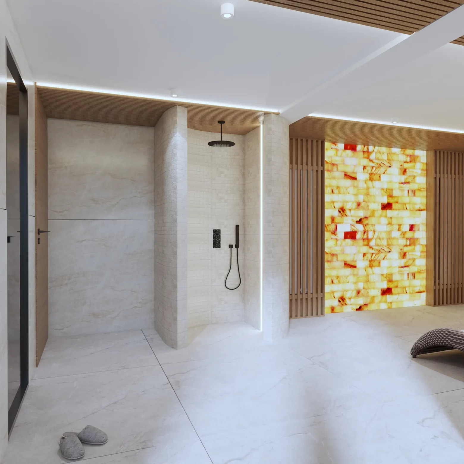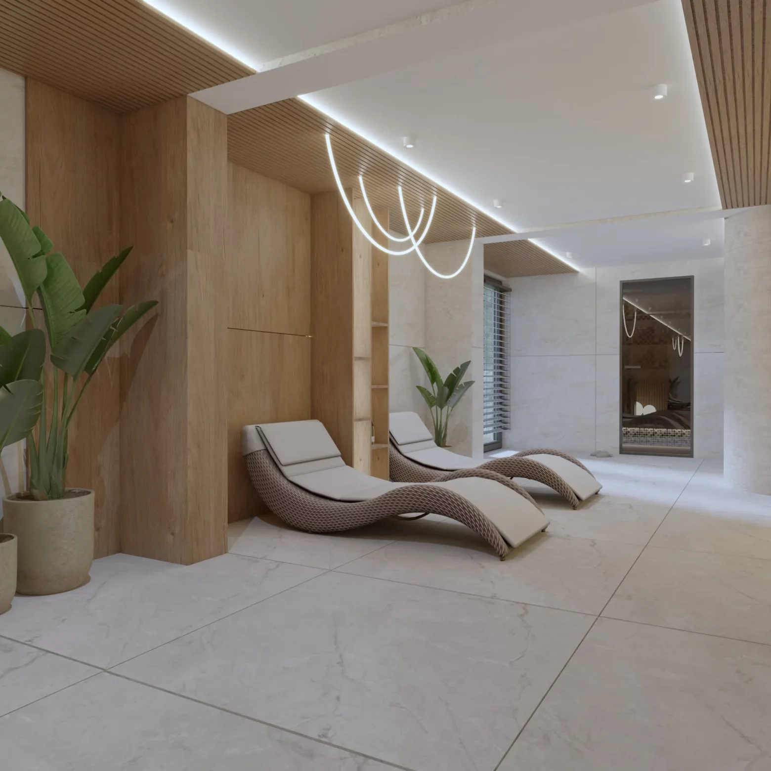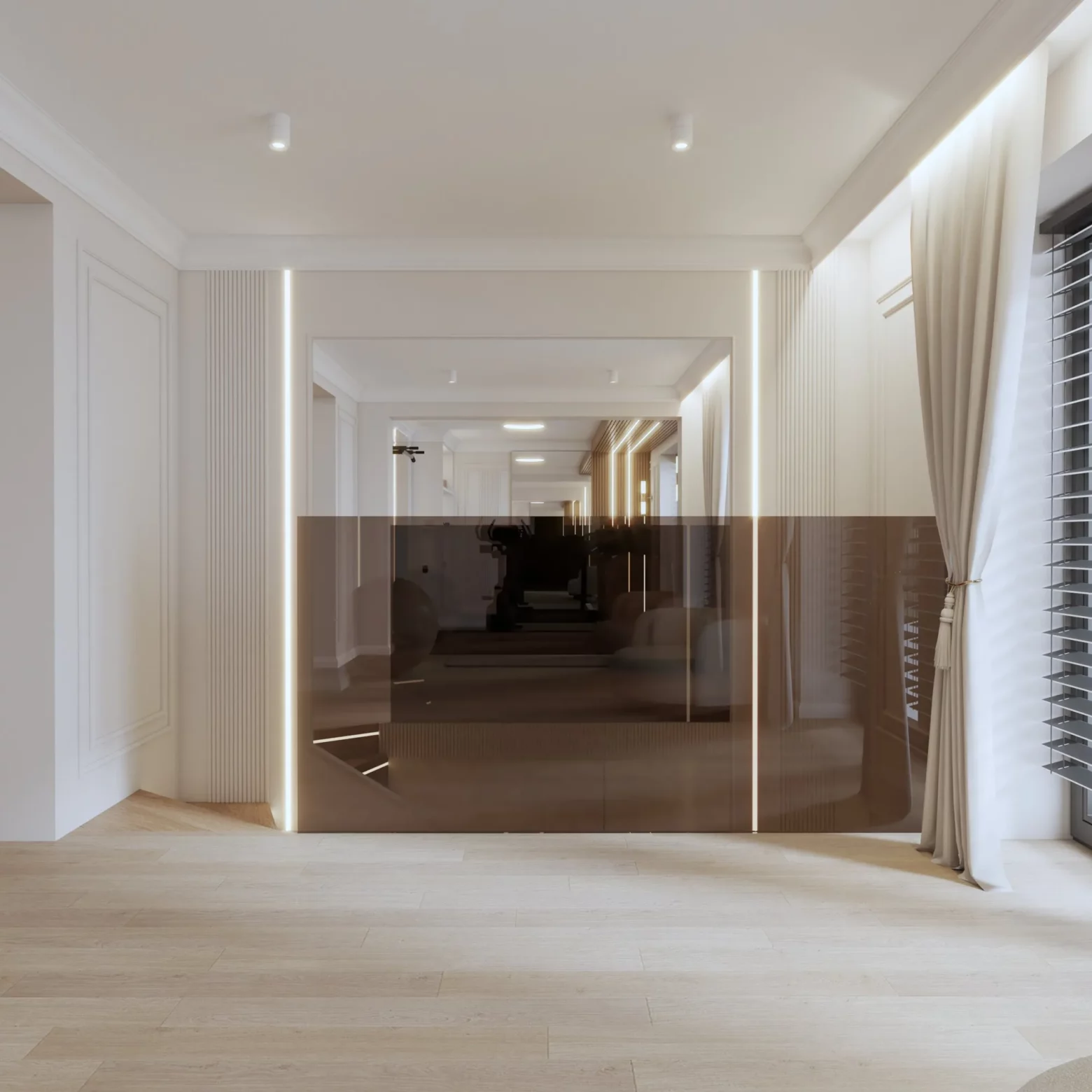 Projekt nowoczesnej strefy relaksu i fitness w domu w Gorlicach, która została zaprojektowana z myślą o komforcie i zdrowiu jej mieszkańców. Przestronna siłownia z nowoczesnym sprzętem, sąsiadująca z sauną oraz strefą SPA, tworzy idealne miejsce do regeneracji ciała i umysłu. Naturalne materiały, przyjemne oświetlenie i subtelne detale sprawiają, że ta domowa oaza sprzyja relaksowi i aktywności fizycznej przez cały rok.