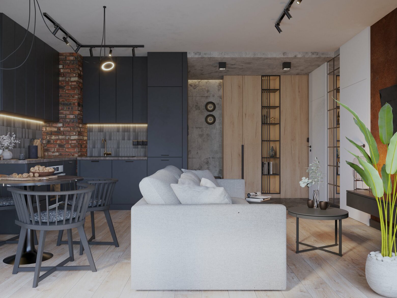 Projekt mieszkania loftowego – industrialny styl z eleganckim wykończeniem